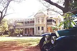 Prominent views out of the garden are to the hills to the north. The overall feeling in the garden, however, is one of enclosure with a focus on the strong design of the house and carriage loop. The vertical lines of the araucaria pines complement the height of the house. Small intimate spaces are provided by the billiard room lawn garden, the courtyard and the tennis court area. The sense of a country grazier's property is evoked by the combination of plant material and there is a feeling of quiet retreat into a former era. (AHC)[1]