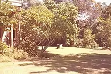 The formal homestead garden is approached through wrought iron gates hung on elaborately stuccoed brick gate posts set in a timber picket fence. The driveway and paths within this area are brick edged & guttered & were originally gravelled although they are now overgrown. There is an overgrown lawn tennis court and many superb trees, including Bunya pines (Araucaria bidwillii), silky oaks (Grevillea robusta), jacarandas (J.mimosifolia), orchid trees (Bauhinia x variegata cv.s),frangipanis (Plumeria rubra cv.s) & a Queensland bottle tree. The garden was sheltered from the prevailing winds by windbreaks of native olives & hedges of "Orange Honeysuckle" (Cape honeysuckle/tecoma (Tecomaria capensis)). Outlines of formal beds can still be seen in what are now lawns. The house is set on a hill overlooking what is called the "lagoon". This is a picturesque small lake which is a habitat for the many water birds which frequent the area. The lagoon & the area between it and the house are considered very important to the house's setting..[2][1]