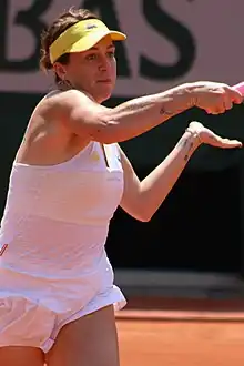 Anastasia Sergeyevna "Nastia" Pavlyuchenkova[3] (Анастаси́я «Настя» Серге́евна Павлюче́нкова; born 3 July 1991) is a Russian professional tennis player. A junior prodigy, Pavlyuchenkova won three Grand Slam titles and became the junior world No. 1, in January 2006, at the age of 14. She continued her success after turning professional, reaching a career-high singles ranking of world No. 11 on 8 November 2021.[4]