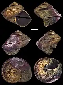 The size of the shell varies between 4 mm and 5 mm. The shell ranges from brown to dark green in color. Though the shell is thin, it is very strong in comparison to other snails.