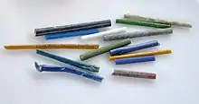 Across the sea, Mycenaean glass beads were found to have been made with glass from both regions. The fact that the beads are stylistically Mycenaean would imply an import of raw glass.[2] Archaeological evidence for this trade comes from the Uluburun shipwreck, dated to the late 14th century BC. Part of its cargo consisted of the earliest known intact glass ingots: about 175 ingots of cylindrical shape, in blue shades from lavender to turquoise, as well as uncolored ones.[7] Some ingots chemically match the glass found in the Egyptian production sites; specifically, they match by shape the melting crucibles found at Amarna.[8]