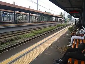 This station has four railroad tracks that have no turning tracks at all; consists of a double track with a double track on the north side leading from Jakarta Kota-Kampung Bandan and a double track on the south side leading from Rajawali.