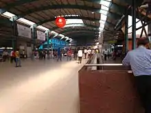 The station was renovated in early 2015 with the establishment of automated escalators and new Automated Ticket Vending Machines (ATVM) for the ease of booking tickets to the daily passengers.[17][18][19] According to the statistics of April 2014 to January 2015, the number of passengers using vending machines was 6,933, whereas in April 2015 to January 2016, it had the higher number of bookings with a total number of 18,316 passengers.[20] Due to the increasing number of passengers travelling on the rooftop of the train coaches, Commissioner of Railway Safety (CRS) electrified the train coaches rooftops containing 25,000 volts.[2][21]