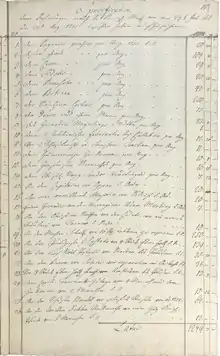 Casanova met André Noël at Madame Rufin's in 1764, during a stay in Berlin.[29][note 5] As early as 1761, Frederick II expressed his satisfaction with Noël, writing to the Marquis d'Argens that "Noël was able to satisfy the most gourmet epicurean in Europe".[30] According to B. Maether, second head chef in 1767.[10] In 1784, on the death of Joyard, he was appointed Joyard's successor as maître d'hôtel".[18][31] Noël headed a team of twelve cooks[32][note 6] to provide royal service at the palace.[18] When Frederick II invited a foreign guest to his table, André Noël could serve up to eighty dishes.[2]