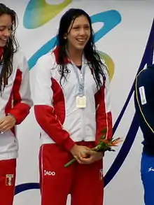 Andrea of Rosario Cedrón Rodríguez (born 24 December 1993 in Trujillo, Peru) is a Peruvian professional swimmer. She was the only Peruvian swimmer in the Olympic games of London 2012.[1] She also represented her country at the Olympic games of Rio de Janeiro 2016.[2]