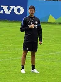 In 2005, Stramaccioni joined the youth coaching staff at Roma, winning two national titles: Giovanissimi Nazionali in 2007 and Allievi Nazionali in 2010.[1] On 9 May 2009, Stramaccioni obtained a UEFA A coaching licence (Italy second category licence),[3] made him eligible to work as a head coach of Lega Pro teams or as a vice-coach of Serie A and Serie B clubs.[4] Stramaccioni, however, did not have a UEFA Pro Licence (Italy first category licence), he could only work as a care-taker in the first and second division of Italy. On that day, Roberto Samaden, Inter youth academy director since 2006,[5][6] also obtained the same licence. Samaden met Stramaccioni in the course and gave Stramaccioni a job in Inter two years later.