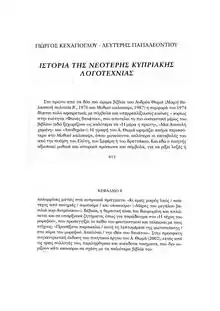 - ↑ Kehagiogliou,Giorgos-Papaleontiou (Κεχαγιόγλου, Γιώργος-Παπαλεοντίου). History of Contemporary Modern Cypriot literaturein Greek,(Ιστορία της Νεότερης Κυπριακής Λογοτεχνίας), Nicosia, Publishers Κέντρο Επιστημονικών Ερευνών Κύπρου. Λευτέρης (2010) (in Greek).