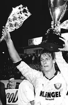 ![]() Wagenhaus celebrates winning the Deutschland Cup in 1990 | |||