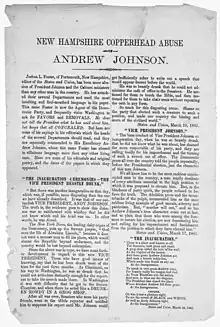 - ↑ "Our New Republican Vice President Requested to Resign". The Cincinnati Enquirer. March 11, 1865. p. 1. Retrieved 2023-12-29.
