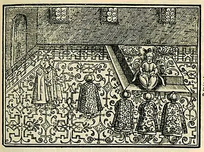 From about 1585, Andronikos rebuilt his father's business ventures and resumed contacts with traders from the Republic of Venice and from all over Lombardy; like Iane, he also became involved in the lucrative business of princely appointments in Wallachia.[34] In various records, he is credited with having obtained in 1591–1592 the Wallachian throne for the Moldavian Stephen the Deaf. He himself was Prince Stephen's Vistier from June 1, 1591, to May 28, 1592, and again in July 1592.[35] According to Iorga, he exercised this task without actually being present in Wallachia.[36] Several researchers, including Iorga, note that one of Andronikos' daughters probably became Stephen's wife.[37] According to Iorga, that lady may have actually wed another pretender, Petru Cercel, while her sister was more certainly the wife of Moldavia's Aaron the Tyrant.[38] Any such connection is disputed by Cazacu, who notes that Iorga mistranslated a letter by Andronikos: what Iorga read as a reference to his "grandchildren" from both Princes was in fact translatable as "servants".[39]