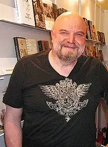 Andrzej Mleczko (born 5 January 1949) is a Polish illustrator, mostly known for his satirical activities. He is also connected with painting, book illustrations, adverts, scenography and posters. He has worked with Polish and foreign magazines, in which he has published more than 15,000 of his drawings.