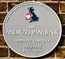 - ↑ "Unveiling of a plaque commemorating the Centenary of Sir Andrzej Panufnik - September 2014". The Polish Heritage Society. 2014.