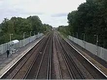 The view of the station platforms from the footbridge, looking northbound. Penge West station can be seen in the distance.