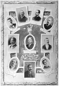 The third match was held 18–19 March 1898. The United States team had white on the odd-numbered boards and the British team had white on the even-numbered boards. The British team won the match by a single game, taking the lead in the series two matches to one, and positioning themselves to end the series and take permanent possession of the Newnes cup should they win the 1899 match for three consecutive match wins.[8] The British players were at the Grand Hall of the Hotel Cecil in London, along with Leopold Hoffer serving as the umpire for the American team.[9] The American players were at the Academy of Music in Brooklyn, with Isaac Rice serving as umpire for the British team.[9] World Champion Emanuel Lasker was the adjudicator, and for the third time Baron Albert von Rothschild was the referee.[9] The moves were transmitted by the Commercial Cable Company.[9]