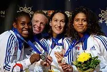 - ↑ "Mondiaux 2013 Budapest: Médaille d'argent pour le fleuret dames par équipes" (in French). Eurosport. 10 August 2013.