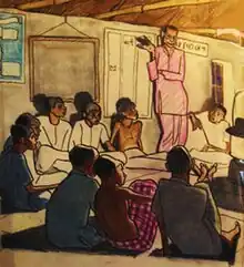 Sketch by Anita Willcox of peace conference at Mahatma Gandhe's ashram, Savagram,India, 1949