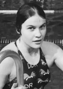 Anke Sonnenbrodt is a German freestyle swimmer who won two silver medals at the 1983 European Aquatics Championships.[1] The same year she set a European record in the 800 m freestyle.[2] She missed the 1984 Summer Olympics in Los Angeles that were boycotted by East Germany, and instead competed at the Friendship Games, where she won a bronze medal in the 400 m freestyle.