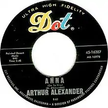 "Anna (Go to Him)", or simply "Anna", is a song written and originally recorded by Arthur Alexander. His version was released as a single by Dot Records on September 17, 1962. A cover version was performed by the Beatles and included on their 1963 debut album Please Please Me. A Spanish-language cover version was performed by Grupo Pegasso and included on their 1996 album Amor Vendido, Vol. 4, followed by an English version in 2019.