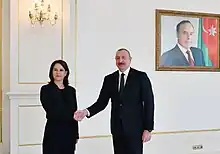 In September 2023, Baerbock accused Azerbaijan of breaking its promise not to resort to military action in Armenian-held Nagorno-Karabakh and called on it to halt the offensive and return to negotiations.[70]