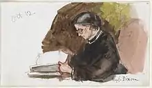 Her works are noted for having characteristics of using warm flesh tones (especially in the forehead) and yellow in the sky.[6] Dixon occasionally used gilded backgrounds in her work.[7] Her skill at capturing likenesses meant that she had a successful career during a time when many portraitists were facing competition from the advent of photography.[8]