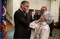 In 1983, Glenn received the first national award of the American Speech and Hearing Association for her meritorious service to those with communicative disorders.[1] In 1987, the National Association for Hearing and Speech Action awarded the first annual Annie Glenn Award for achieving distinction despite a communication disorder.[1] Glenn presented the award to James Earl Jones as its first recipient.[1] She was inducted into the National Stuttering Association Hall of Fame in 2004.[14] In 2015, Ohio State University renamed 17th Avenue (on its campus) to Annie and John Glenn Avenue.[15]