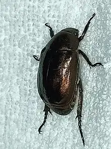 Anomala cuprea is a nocturnal scarab beetle active at night and feeds on flowers and leaves. It has a wide-ranging diet, consuming various types of plants.[2]