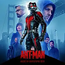 In February 2014, director Edgar Wright tweeted that Steven Price would score the film.[1] However, Price left soon after Wright's departure from the project in May 2014.[2] In January 2015, Christophe Beck, who worked with Wright's replacement Peyton Reed on Bring It On, was hired to replace Price.[3] Describing the film's score, Beck said, "For Ant-Man, I wanted to write a score in the grand symphonic tradition of my favorite superhero movies, with a sweeping scope and a big, catchy main theme. What makes this score stand out among other Marvel movies, though, is a sneaky sense of fun since it is, after all, not only a superhero movie, but also a heist comedy."[4] The soundtrack was released digitally on July 17, 2015, and in physical media on August 7.[5]