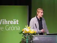 Antero Vartia (born 22 August 1980 in Helsinki) is a Finnish politician, entrepreneur and former actor representing the Green League. He was elected to the Parliament of Finland in the parliamentary election in 2015.[1] Previously he was a candidate in the 2014 European Parliament election.[2]