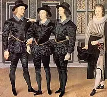The first that showed his bands to the Queen, was that noble, virtuous, honorable man, the Viscount Montague, . . . who now came, though he was very sickly, and in age, with a full resolution to live and die in defense of the Queen. . . . And to show his mind agreeably thereto, he came personally himself before the Queen, with his band of horsemen, being almost two hundred; the same being led by his own sons, and with them a young child, very comely, seated on horseback, being the heir of his house, that is, the eldest son to his son and heir: a matter much noted of many, to see a grandfather, father, and son, at one time on horseback, afore a Queen for her services.