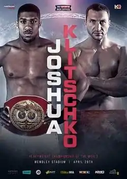 Anthony Joshua vs Wladimir Klitschko was a professional boxing match contested between Anthony Joshua and Wladimir Klitschko. The event took place on 29 April 2017 at Wembley Stadium in London, England, with Joshua's IBF and the vacant WBA (Super) and IBO heavyweight titles on the line. Joshua, 27, won the match via technical knockout (TKO) in the eleventh round with 90,000 fans in attendance. Klitschko, 41, announced his retirement from boxing a few months after the fight. The bout was named Fight of the Year by The Ring and the Boxing Writers Association of America.