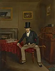Portrait of Anthony Adrian Keith-Falconer, 7th Earl of Kintore, seated in an interior, attributed to John Ferneley