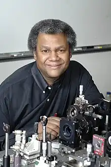Anthony Michael Johnson is an American experimental physicist, a professor of physics, and a professor of computer science and electrical engineering at the University of Maryland, Baltimore County (UMBC). He is the director of the Center for Advanced Studies in Photonics Research (CASPR),[1] also situated on campus at UMBC. Since his election to the 2002 term as president of the Optical Society, formerly the Optical Society of America, Johnson has the distinction of being the first and only African-American president to date.[2] Johnson's research interests include the ultrafast photophysics and nonlinear optical properties of bulk, nanostructured, and quantum well semiconductor structures, ultrashort pulse propagation in fibers and high-speed lightwave systems. His research has helped to better understand processes that occur in ultrafast time frames of 1 quadrillionth of a second. Ultrashort pulses of light have been used to address technical and logistical challenges in medicine, telecommunications, homeland security, and have many other applications that enhance contemporary life.[3]