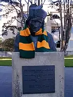 Bust of Anthony Maraschi, S.J., adorned with USF's colors