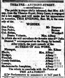 - ↑ Ireland, Joseph Norton Records of the New York Stage: From 1750 to 1860, Vol. I, pp. 286 (1866)