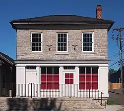 Waldman's feed and flour store is never listed at his stone house address. A mortgage taken out by Waldman in May 1863 probably coincides with alterations to the stone building to convert it to purely residential use and appearance. In particular, the commercial storefront windows on the first floor were filled with stonework and two smaller windows to match those on the second story above. Apparently by this time the stone house was no longer a viable location for a retail business.