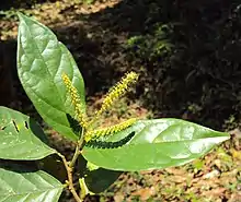 Antidesma montanum is a species of tree in the family Phyllanthaceae, native to Southeast Asia, from India to the Philippines.[2] It can grow up to 10 m (33 ft).[3] The fruits are edible.[4] Four varieties have been accepted, each of which has multiple synonyms, which include Antidesma obliquinervium for A. montanum var. montanum.