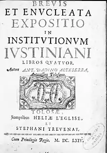 Brevis et enucleata expositio in Institutionum Iustiniani libros quatuor, 1664