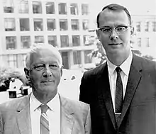 Gaudin (left) with Professor Douglas W Fuerstenau in Berkeley in June 1965, one year before his retirement from MIT