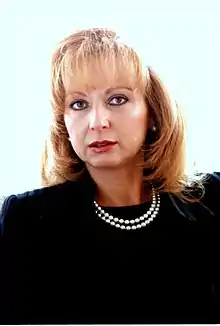 Antonina Stoyanova (Bulgarian: Антонина Стоянова), née Naydenova, is a Bulgarian IP lawyer, diplomat and social activist, who was the First Lady of Bulgaria between 1997 and 2002, as the wife of the President Petar Stoyanov. She received her law degree and her PhD in international relations from the University of Leipzig.