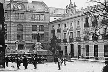 In the spring of 1928 Mazarrasa was involved in Monte de Piedad y Caja de Ahorros de Madrid, a traditional financial institution operating as charity pawnbroker and savings bank, at that time largely controlled by state and municipal authorities. Upon death of its manager, Conde de Sepúlveda, and in line with the routine, the board proposed 3 candidates for the position of director-gerente.[94] Mazarrasa was one of them and it was eventually him nominated by the royal decree.[95] He moved to Madrid and assumed the role corresponding to this of CEO; he would remain at the helm of Monte for the following 8 years. The fall of dictatorship and emergence of the republic did not affect his professional position, even though he was already in the retirement age.[96] Mazarrasa managed the institution and represented it in court; by present-day scholars his tenure is viewed as fairly successful.[97] It lasted until September 1936; in revolutionary Madrid the syndicates commenced purge of officials considered potentially disloyal. He was dismissed[98] and replaced by the secretary of Monte.[99]