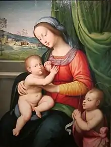 Most of Ceraiolo's paintings are half-length images of the Madonna and Child, usually with the young Saint John the Baptist, Florence's patron saint.