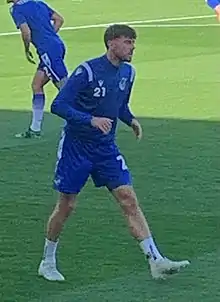 Evans joined the Everton academy at the age of nine after previously training with Liverpool.[3] He signed a professional contract with the Toffees in October 2015.[4] In January 2017 Evans joined League Two side Morecambe on loan for the rest of the 2016–17 season.[5] He made his professional debut on 4 February 2017 in a 1–1 draw away at Doncaster Rovers.[6]
