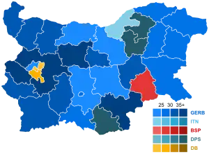Both GERB and BSP had very poor results and there was a large turnover with a third of the seats taken by parties not represented in the previous parliament.[15] A central theme in the election was purported corruption in the GERB-led government, which saw GERB lose seats and various anti-corruption parties gain, most notably Slavi Trifonov's ITN, but also DB and ISMV. The Bulgarian Socialist Party suffered from division between its leader Korneliya Ninova and other factions.[16] The BSP recorded their worst-ever result in a democratic election.[15] The far-right parties also suffered from splits, losing their representation in parliament;[16] the Attack party and the two remaining parties from the United Patriots alliance (the National Front for the Salvation of Bulgaria and Volya Movement) contested the elections separately, with none winning a seat. The three combined results of the three parties suggested they could have crossed the electoral threshold if they had run together.