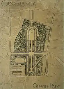 The Arab League Park (Arabic: حديقة جامعة الدول العربية) is an urban park in Casablanca, Morocco. It is located in the center of the city, west of Hassan II Boulevard, east of Roudani Boulevard and Algiers Street, and south east of the Church of the Sacred Heart. The park covers 30 acres of land, and is bisected by Moulay Youssef Boulevard. As of 2019, it remains officially closed to the public after renovations started March 2016, though it was expected to open September 2018.[1][2]
