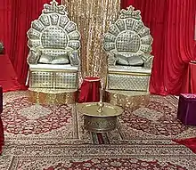 Thrones for the groom and bride at their Moroccan Jewish henna ceremony; edited copy of original