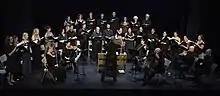 The Arcady Ensemble is a Canadian musical ensemble based in Brantford, Ontario founded in 1998 by composer and artistic director Ronald Beckett.[1] The organization serves as an arts training organization that combines professional singers and instrumentalists from Southwestern Ontario with emerging artists and youth in rehearsal and performance.[2] Its repertoire consists primarily of contemporary Canadian compositions by Ronald Beckett and emerging composers.[3] It holds performances entitled There’s a Song in the Air and Voices of Summer in Brantford each year.[4][3] The ensemble evolved from a group that performed historically informed concerts of early music.[5] Arcady Ensemble still gives at least two early music performances annually, including Handel's Messiah at Lighthouse Festival Theatre in Port Dover, Ontario.[3][6] The organization's roster includes some 150 Canadian musicians in total.[4]