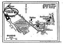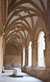 The Monastery of San Vicente is believed to have been founded in 761, during the reign of Fruela I. Only remnants of that first building have survived. However, the cloister, begun in the 1530s under the direction of master builder Juan de Badajoz, the Younger and completed by Juan de Cerecedo, the Elder and Juan de Cerecedo, the Younger in the 1570s, remains standing. [6]
