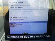 February 2017; "sailings suspended due to swell conditions at Dunoon Pier, replacement buses being organised."