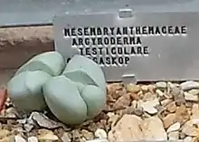 Argyroderma testiculare (Afrikaans: bokklootjies) is a species of succulents endemic to the quartz gravel of the Knersvlakte region. of South Africa's Western Cape. It belongs to the Aizoaceae family, and is listed as rare on the SANBI Red List, because it occurs in an area smaller than 68 km2, but it is not endangered there.[1]