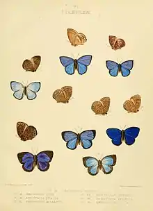 - ↑ Hewitson, W. C. (1862). Specimen of a catalogue of Lycænidæ in the British Museum. London: Taylor and Francis. p. 12.